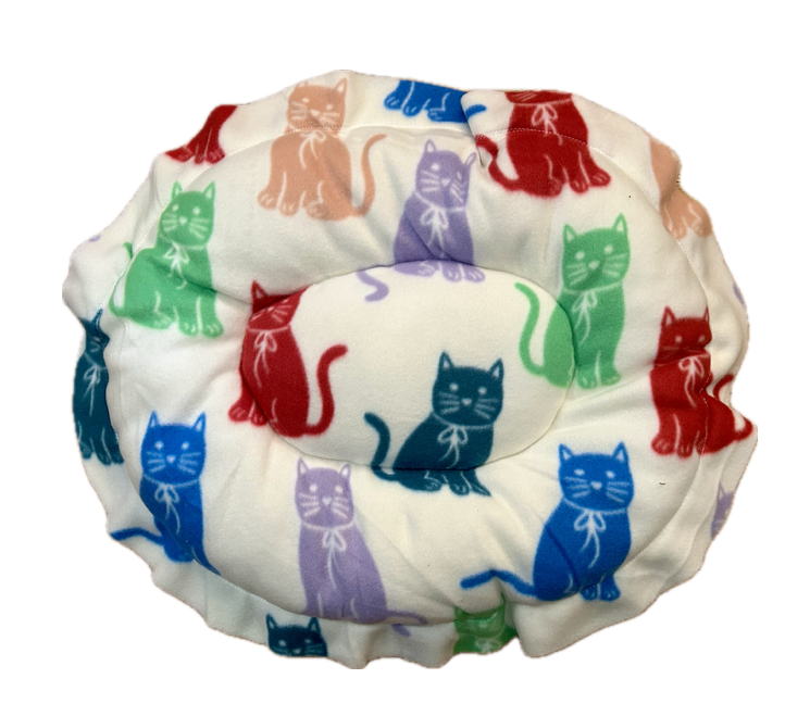 Cozy handmade pet nests❣   Soft fleece outside, polyfill inside.  Most have matching “catnip kickers” available.  Machine washable.   Endorsed by many satisfied “cat-omers.” 🐾