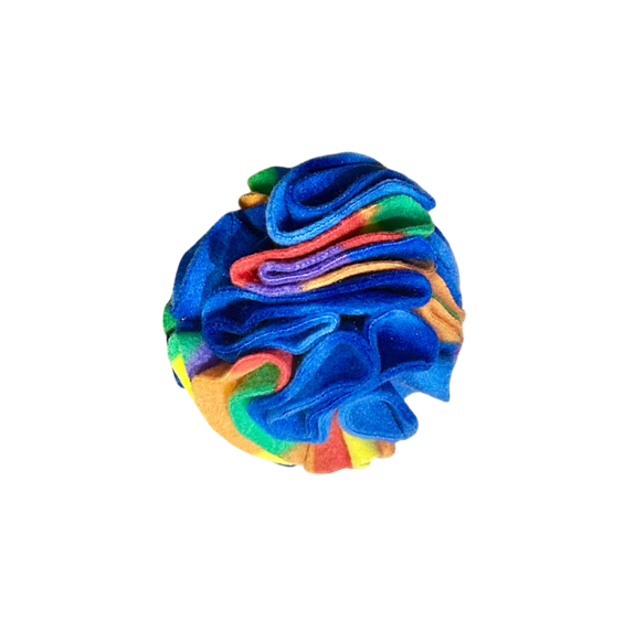 Handmade snuffle ball. A snuffle ball is a type of dog/cat puzzle toy. It is designed to hide dry food (or catnip for cats), making it more difficult to eat and encouraging dogs/cats to use their hunting skills to locate it. Dry food can then be sprinkled into the ball so that the dog/cat has to seek it out. Four reasons why snuffle toys for good for dogs/cats:
